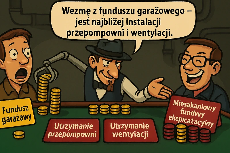 Od sześciu lat koszty utrzymania przepompowni i wentylacji — instalacji wspólnych dla całego budynku — obciążają fundusz garażowy. Dlaczego? Z niewiedzy, z braku czasu, czy może z wygodnego nawyku „bierzemy z tego, co pod ręką”? Najczęściej słyszane tłumaczenie ze strony zarządcy brzmi: „to mieszkańcy tak zagłosowali”. To kuriozalne usprawiedliwienie w ustach osoby, której obowiązkiem jest dbałość o to, by uchwały były zgodne z prawem, interesem wspólnoty i zasadami zdrowego rozsądku.