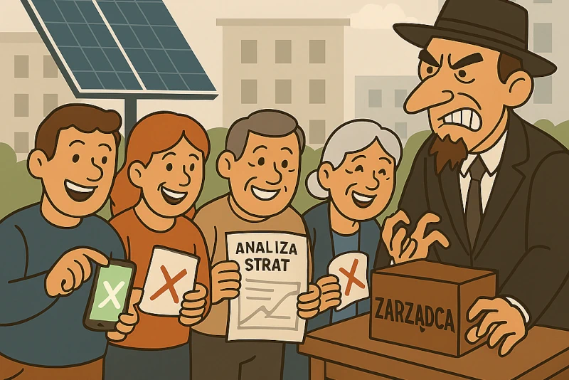 Szacowany czas czytania w minutach: 2 💰 Setki tysięcy ze wspólnej kasy na stratny projekt? 📉 Analiza nie pozostawia złudzeń: fotowoltaika pożre nasze pieniądze — żadnych zysków nie będzie tylko min. 85-tysięczna strata. Zarządca przez tygodnie ukrywał dokumenty i pominął informację o prawie zmiany głosu. Czyje interesy naprawdę reprezentuje — i dlaczego brnie w tę inwestycję mimo ostrzeżeń? Sprawdź, komu taka sytuacja się opłaca — bo nam na pewno nie. Ten materiał odsłania kulisy i pokazuje, dlaczego głos PRZECIW to głos w obronie naszych pieniędzy.